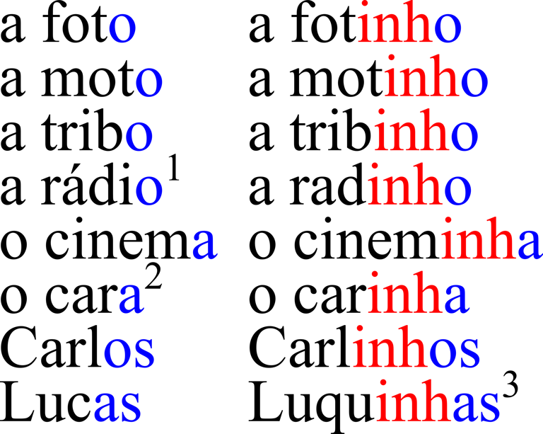 Na língua portuguesa, é mais comum as palavras masculinas terminarem em -o e as femininas, em -a, porém, o oposto ocorre, sendo mais comum palavras masculinas terminadas em a: o cinema, o astronauta, o drama, o carma, o chapa, etc., por isso, sabemos flexionar o diminutivo sem erro. Já as palavras femininas terminadas em o (com exceção das palavras terminadas em -ão) são pouco comuns, como: a tribo, a libido, a virago, etc. que geralmente não usamos no dia a dia e muito menos o seu diminutivo, por estes motivos, as palavras foto (redução de fotografia) e moto (redução de motocicleta) são flexionadas erroneamente, mas seguindo a lógica do sufixo “zinho/zinha”