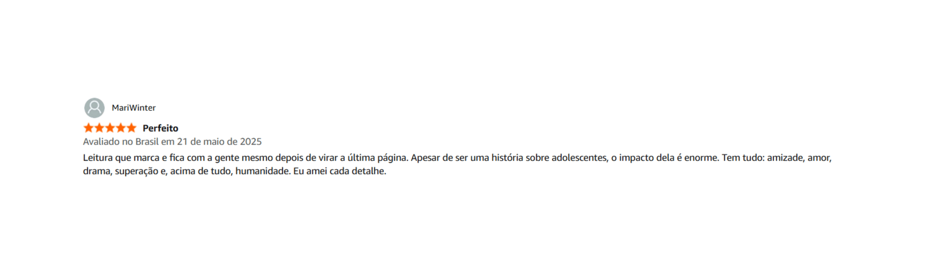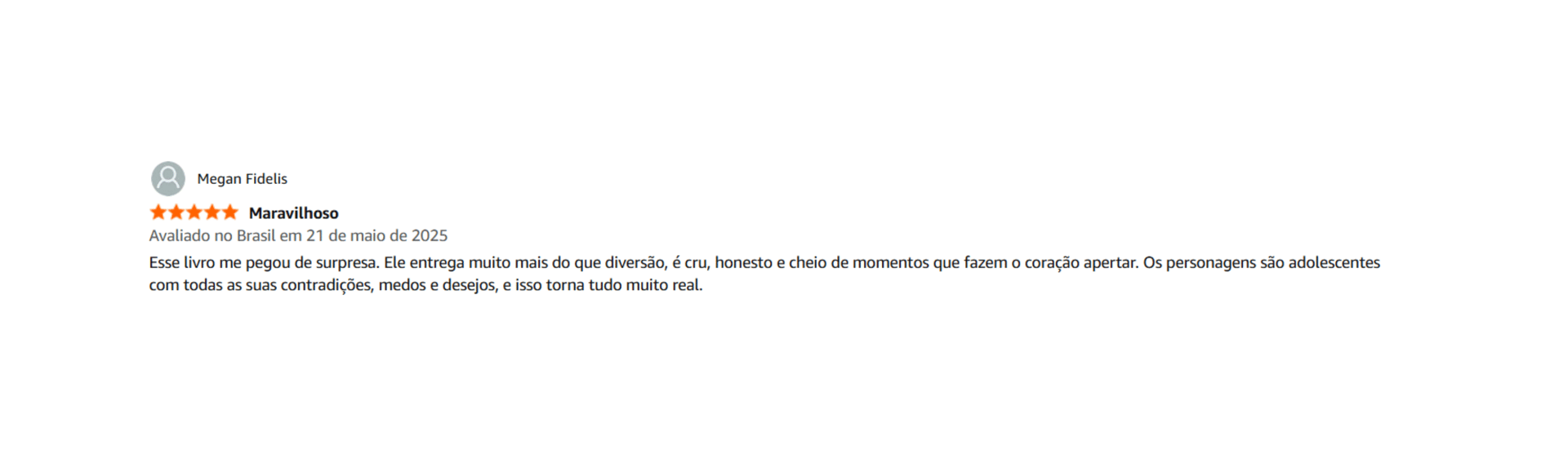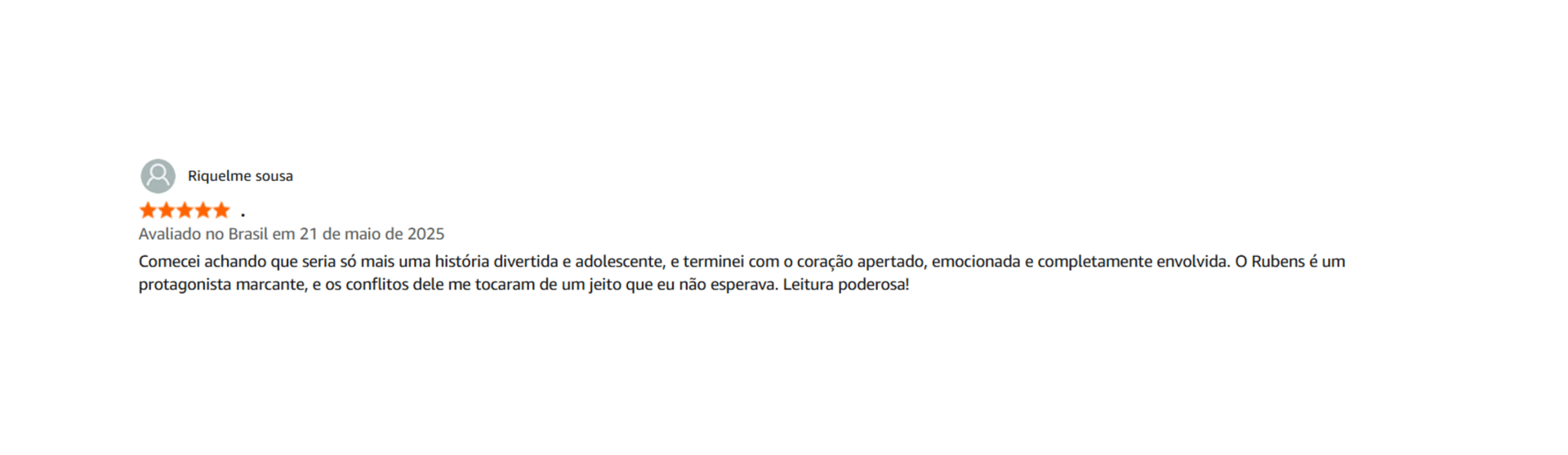 “Com uma escrita forte e tocante, o autor trouxe um enredo envolvente porém NECESSÁRIO! Um livro que todos os jovens deveriam ler, com vários tópicos importantes e fortes sendo trabalhado, de uma maneira consciente.